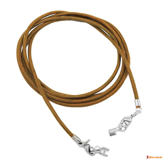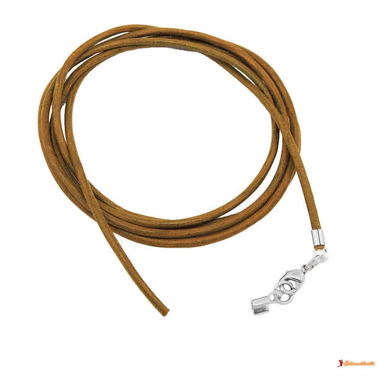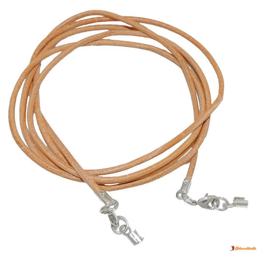 Lederband Rundschnur Rindleder 2mm naturfarben mit 2x Verschluss silberfarbig ca. 1m