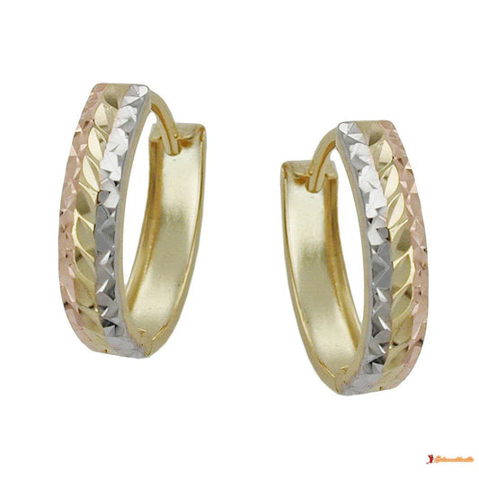 Creole Ohrring 12x3mm Klappscharnier tricolor diamantiert 9Kt GOLD