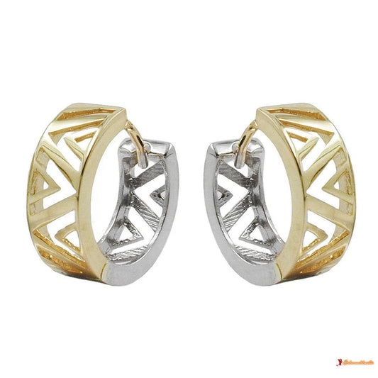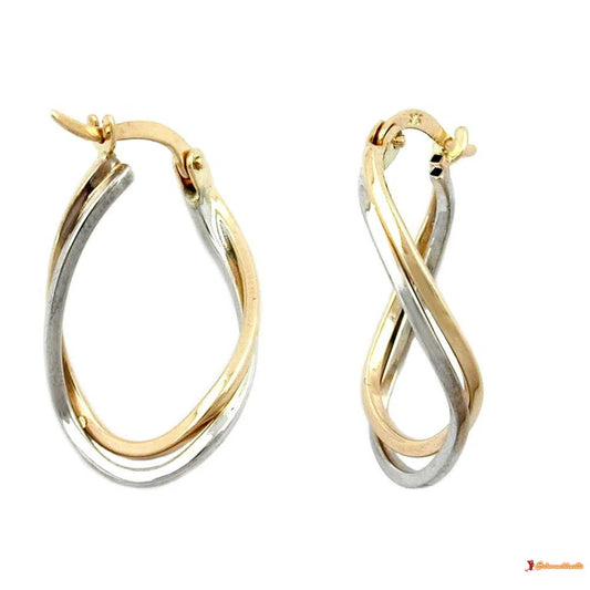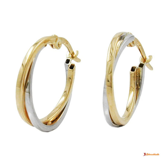 Creole Ohrring 13x5mm Klappscharnier bicolor Gelbgold und Weißgold 9Kt GOLD