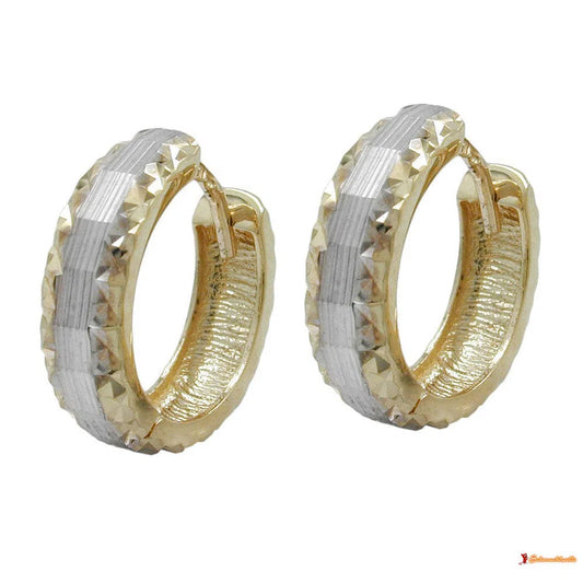 Creole Ohrring 14x4mm Klappscharnier bicolor diamantiert 9Kt GOLD