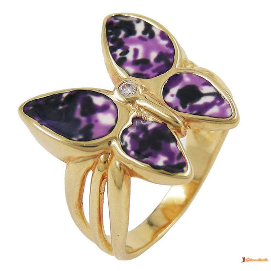Ring 18x20mm Schmetterling lila farbig lackiert 3 Mikron vergoldet