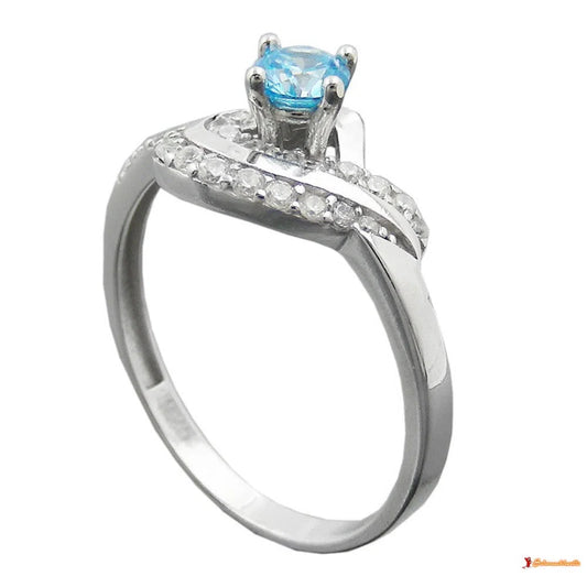 Ring 10mm Zirkonias aqua und weiß glänzend rhodiniert Silber 925