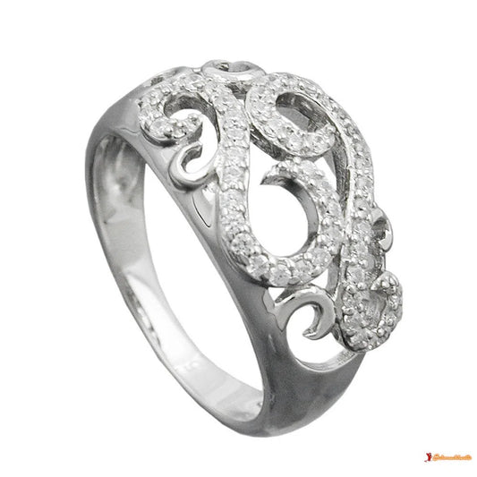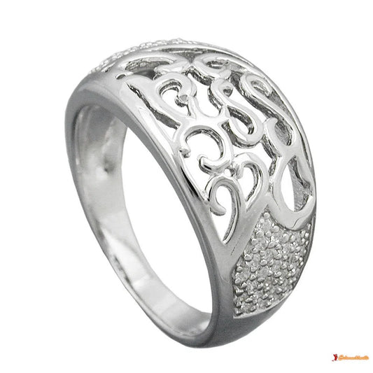 Ring 11mm floral mit vielen Zirkonias glänzend rhodiniert Silber 925
