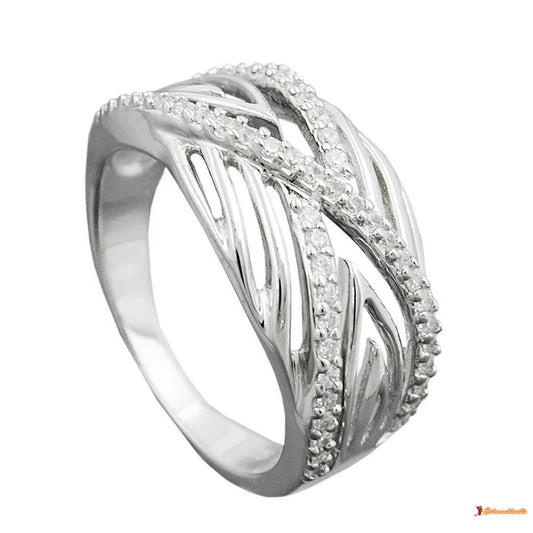 Ring 12mm mit Zirkonias glänzend diamantiert rhodiniert Silber 925