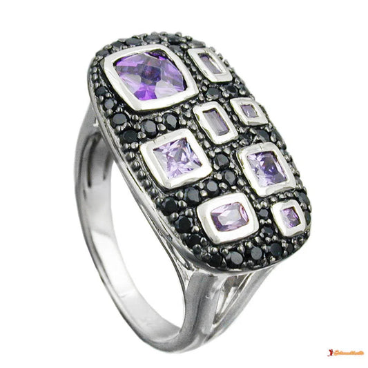 Ring 13x22mm mit Zirkonias lila-schwarz glänzend rhodiniert Silber 925