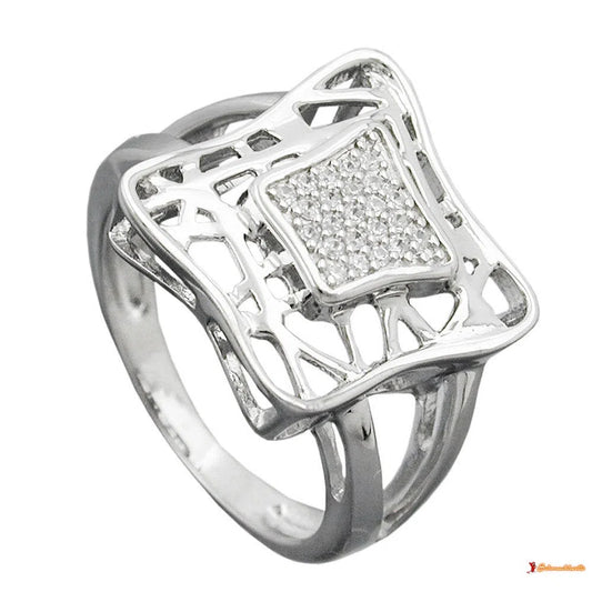 Ring 16mm mit vielen Zirkonias glänzend rhodiniert Silber 925