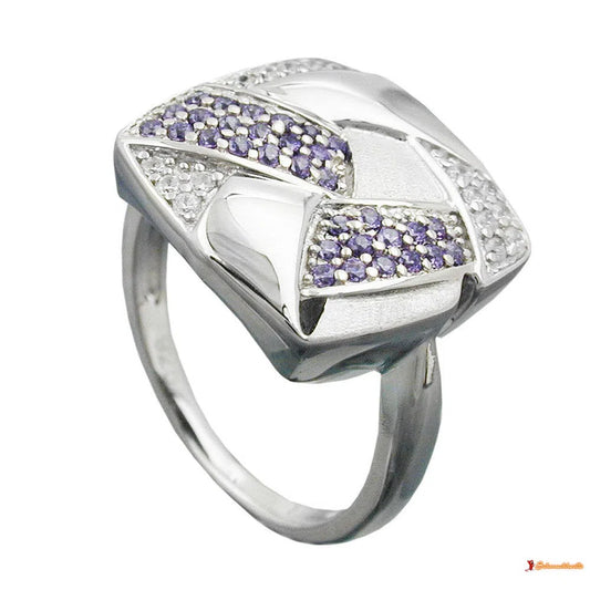 Ring 16x16mm mit Zirkonias lila-weiß matt-glänzend rhodiniert Silber 925
