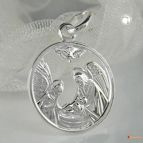 Anhänger 15mm Maria und Josef ausgestanzt glänzend Silber 925
