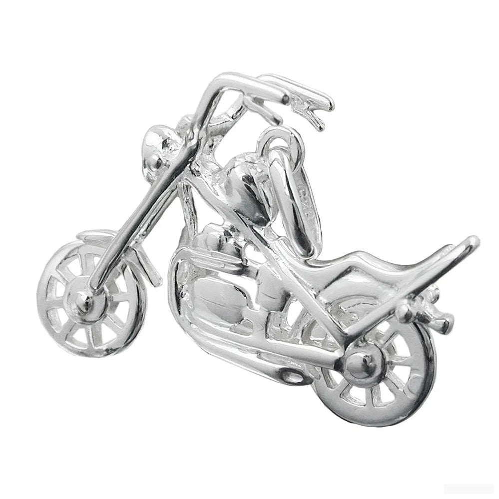 Der Anhänger 25x18mm Chopper Motorrad Silber 925 ist das perfekte Accessoire für alle Motorrad-Liebhaber! Hergestellt aus hochwertigem Sterling Silber 925, ist dieser massiver Motorrad-Anhänger nicht nur ein echter Blickfang, sondern auch ein Ausdruck von Leidenschaft für das Biken. Die detailreiche Nachbildung einer Chopper-Maschine ist mit beweglichen Rädern ausgestattet, was ihn zu einem einzigartigen Schmuckstück macht.