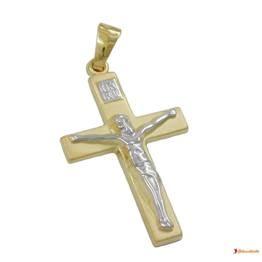 Anhänger 27x17mm Kreuz mit Jesus bicolor matt-glänzend 9Kt GOLD