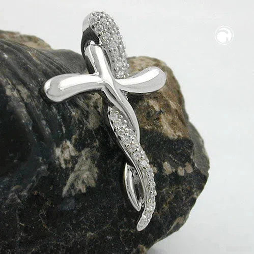Anhänger 29x18mm Kreuz mit Zirkonias rhodiniert Silber 925