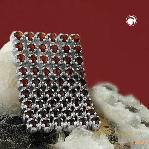 Anhänger 38x25mm Glassteine dunkelrot glänzend rhodiniert Silber 925