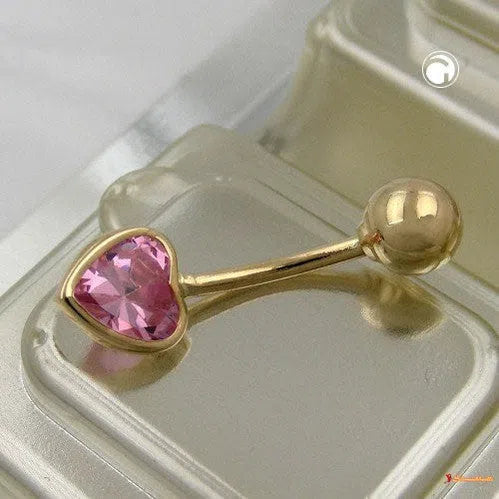 Bereichern Sie Ihre Schmucksammlung mit diesem atemberaubenden Bauchnabelpiercing und setzen Sie ein modisches Statement! Wunderschöner Piercingschmuck für den Bauchnabel aus 585er Gelbgold (14 Karat), der in hochwertiger Juwelierqualität verarbeitet ist. Der pinkfarbene Zirkonia in Herzform macht dieses Stück zu einem unverzichtbaren Accessoire für jede modebewusste Frau.
