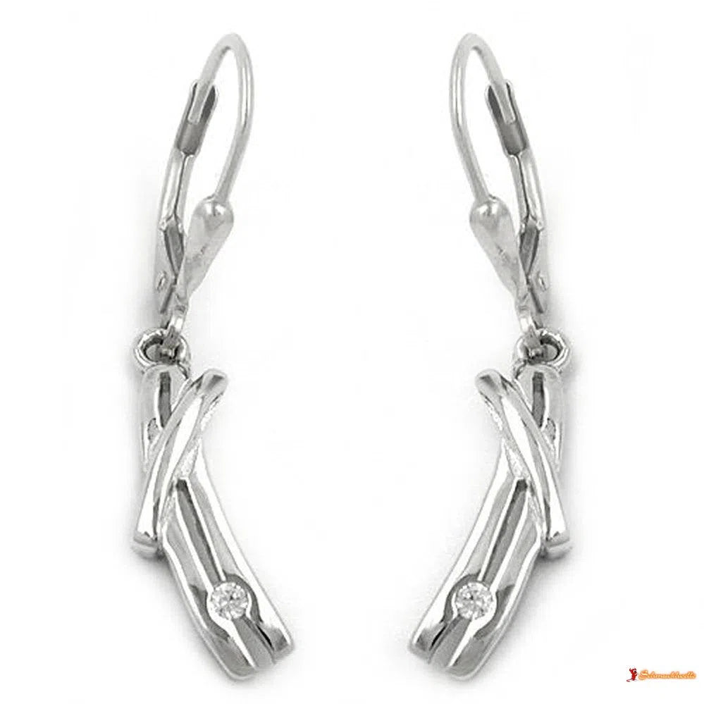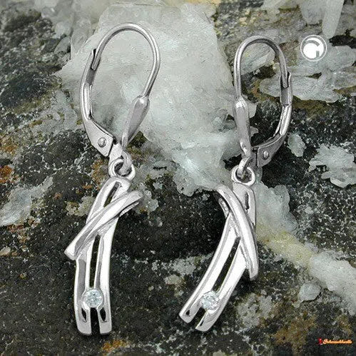 hochwertig gearbeiteter Ohrhänger, Oberfläche glänzend, mit kleinem Zirkonia, anlaufgeschützt rhodiniert