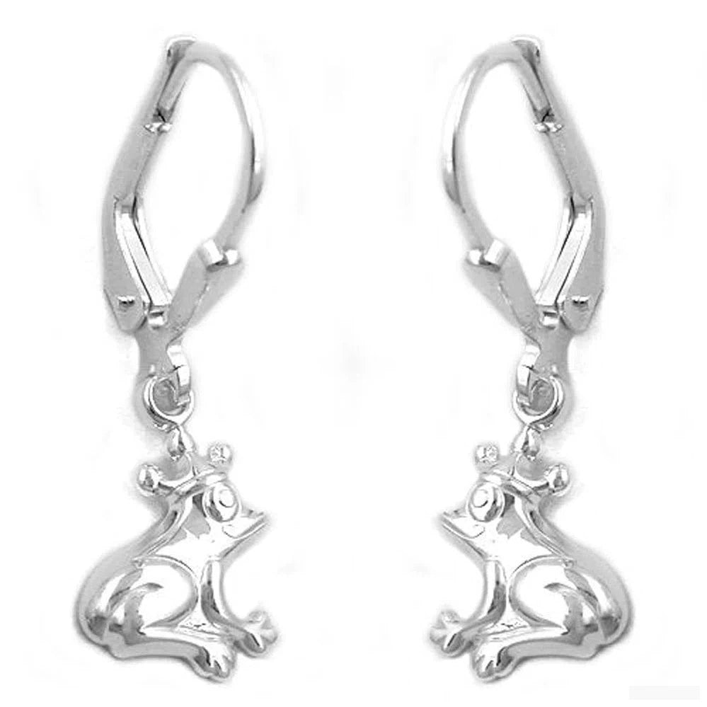 detailreiche Nachbildung der Märchenfigur Frosch mit kleiner Krone, filigran gearbeiteter Ohrhänger Oberfläche glänzend, Rückseite verbödet (glatt geschlossen), Ein wunderschönes Geschenk für die kleine Prinzessin!