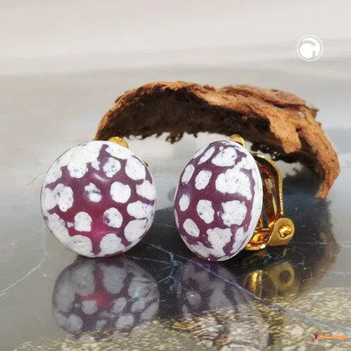 Dieser tolle Ohrclip mit einer Oberfläche wie Hammerschlag ist ein tolles Accessoire für Ihre aktuelle Herbst- und Wintermode. Die Grundfarbe ist lila mit AB-Schimmer und die kleinen Vertiefungen sind weiß-lackiert.