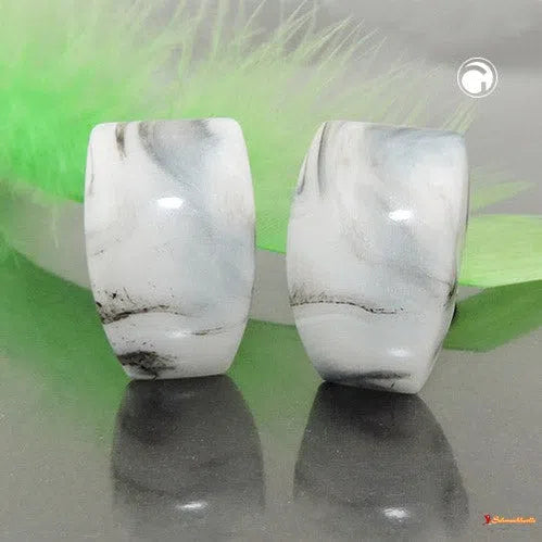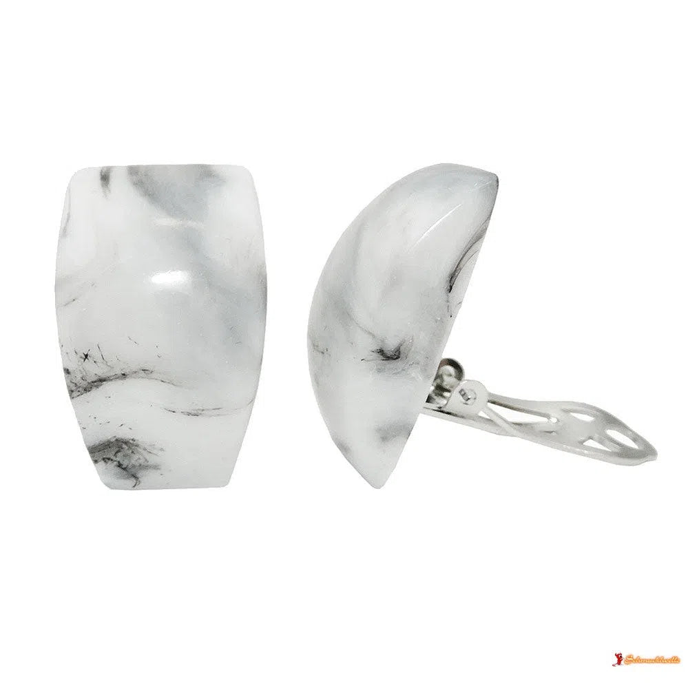 Clip Ohrring 27x17mm Trapez weiß-grau-marmoriert glänzend Kunststoff-Bouton