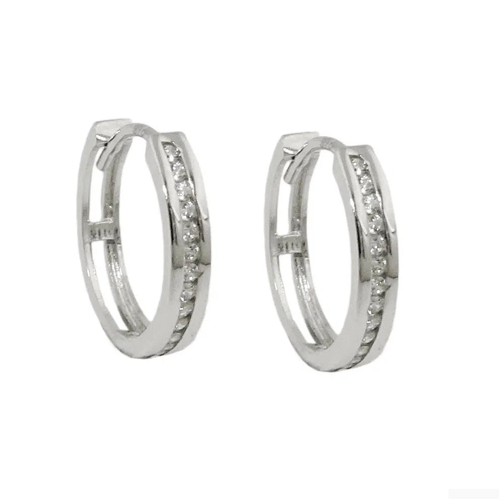 Creole Ohrring 14x3mm Klappscharnier mit Zirkonias 9Kt Weißgold