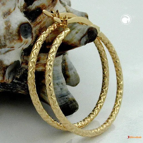 Creole Ohrring 23x15mm Bügelverschluss Muster glänzend diamantiert 9Kt GOLD