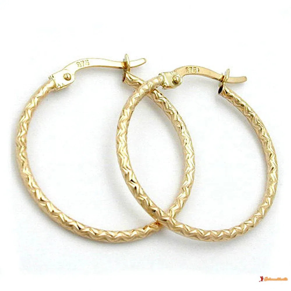 Entdecken Sie den Creole Ohrring 23x15mm Bügelverschluss Muster glänzend diamantiert 9Kt GOLD, ein elegantes Schmuckstück, das jeden Look aufwertet. Diese atemberaubenden Creolen, gefertigt aus hochwertigem 9-karätigem Gelbgold, bieten eine perfekte Kombination aus Stil und Komfort. Mit einer Größe von 23x15mm und einem klassischen Bügelverschluss sind sie sicher und angenehm zu tragen.