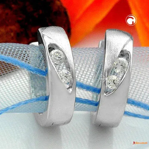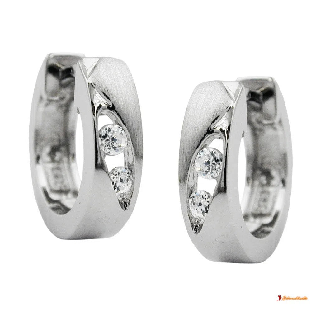 elegante Scharniercreole (Klappcreole) mit Zirkonia weiß, Oberfläche matt-glänzend, anlaufgeschützt rhodiniert