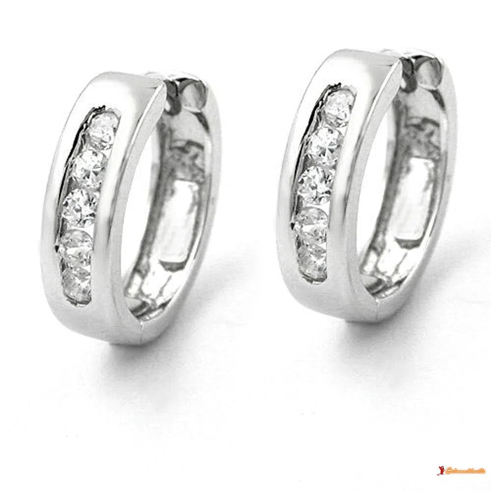 hochwertig gearbeitetes Creolenpaar mit Klappscharnier in bester Juwelierqualität, Vorderseite mit Schlitz in dem 5 Zirkonia eingearbeitet sind, Rückseite glatt, Oberfläche hochglänzend anlaufgeschützt rhodiniert, Ein wunderschönes Schmuckstück für eine besondere Gelegenheit.