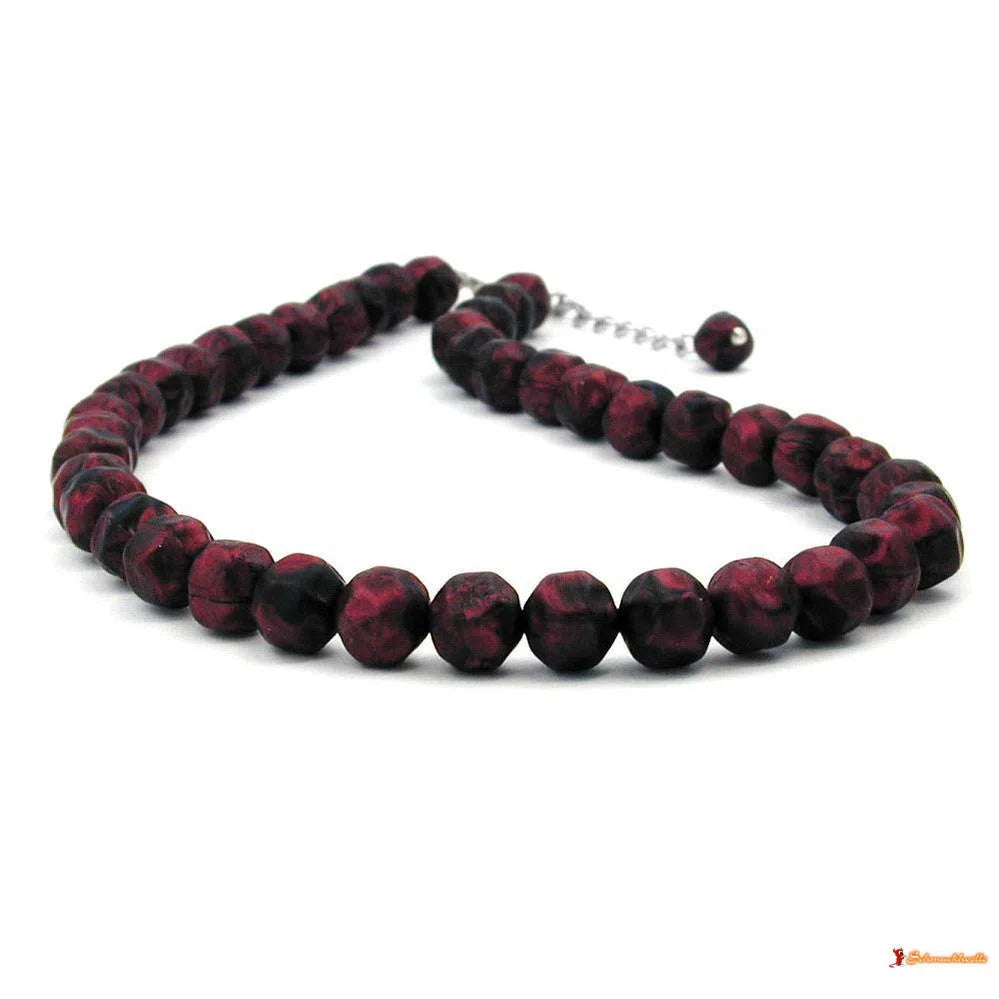 Kette 10mm Kunststoffperlen Barockperlen rot-schwarz-marmoriert 42cm