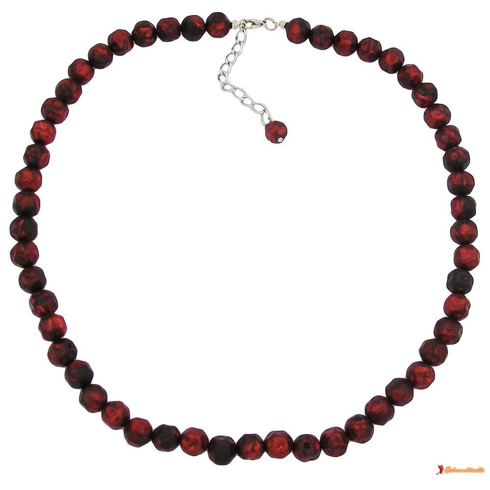 Kette 10mm Kunststoffperlen Barockperlen rot-schwarz-marmoriert 50cm