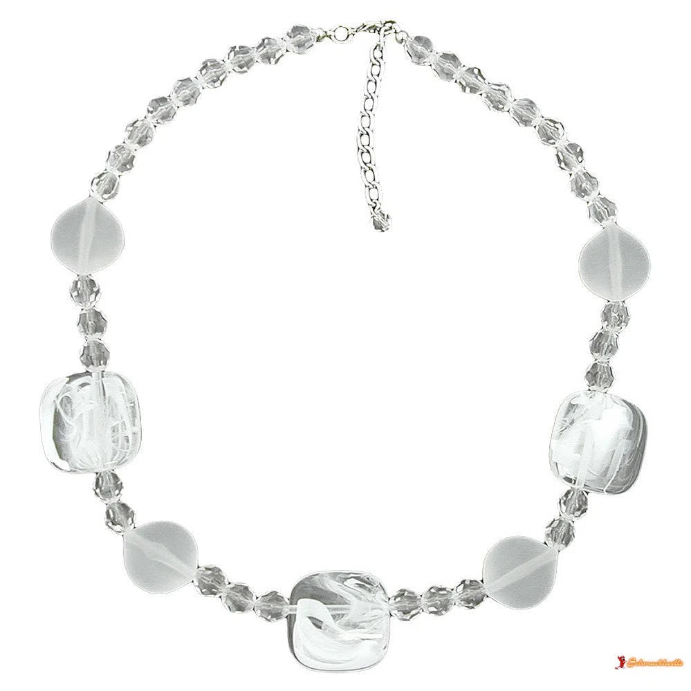 Kette 3x Viereckperlen und Facettenperlen weiß transparent Kunststoff 45cm