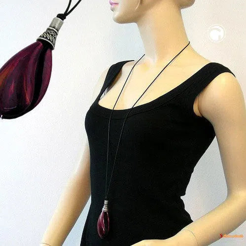 Entdecken Sie die Kette 85x36mm Tropfen violett-marmoriert glänzend 100cm, die durch ihr einzigartiges Design besticht. Der stilvolle Anhänger in Tropfenform kombiniert violett-goldfarbene Marmorierungen, die jedem Look eine elegante Note verleihen. Diese Kette ist das ideale Accessoire, um voluminöse Oberteile, leichte Blusen oder Shirts zu ergänzen und Ihre Outfits aufzupeppen.