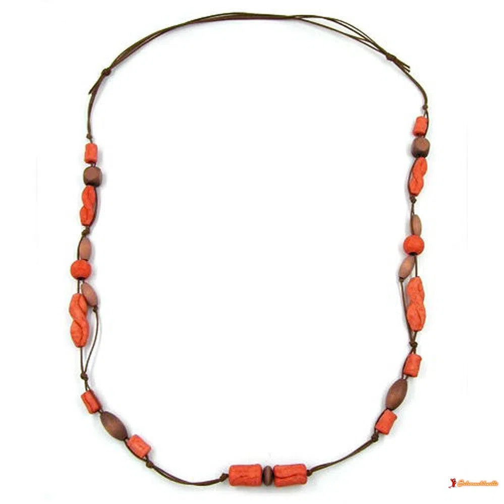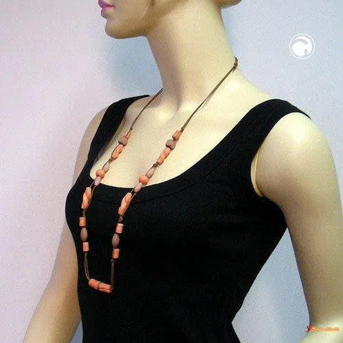 Doppelkordel braun, Holz- und Kunststoffperlen
