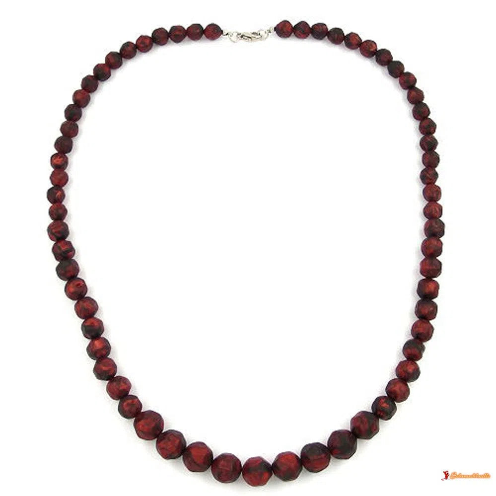 Collier passend zur aktuellen Herbst- und Wintermode, 12mm 10mm und 8mm Kunststoff-Perlen, wie gedrückt, rot-schwarz-metallic, verlaufend gefädelt, Verschluss silber-farbig mit Verlängerungskettchen, in Deutschland gefertigte Handarbeit