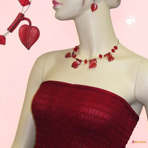 Entdecken Sie die bezaubernde Kette Drahtkette 4x Blätter rot-flitter Kunststoffperlen 44cm, die perfekt für modebewusste Frauen ist! Dieses außergewöhnliche Drahtcollier besticht durch seine vier kunstvoll gestalteten Blätter aus roten, flitterbedeckten Kunststoff-Perlen, die jeweils eine Größe von 28x20mm haben. Die Kette ist nicht nur ein wahrer Blickfang, sondern setzt auch stilvolle Akzente zu floralen Outfits und farbenfrohen Oberteilen.