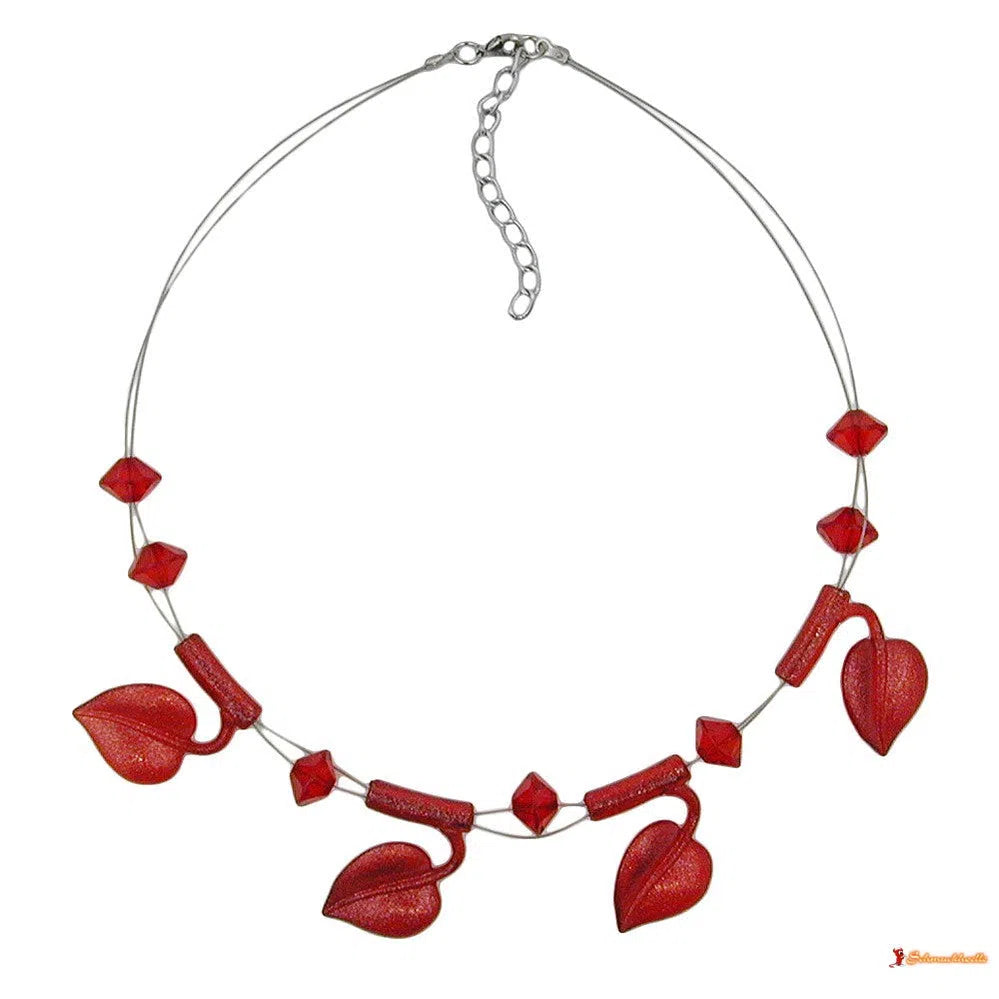 Kette Drahtkette 4x Blätter rot-flitter Kunststoffperlen 44cm