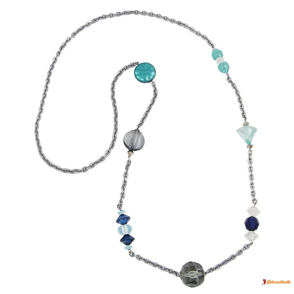 Die Kette Facettenperlen grau-türkis besteht aus hochwertigen Kunststoff- und Metallmaterialien, die sowohl leicht als auch langlebig sind. Die Kombination aus verschiedenen Oberflächenarten sorgt für ein aufregendes Design, das Ihren persönlichen Stil unterstreicht.