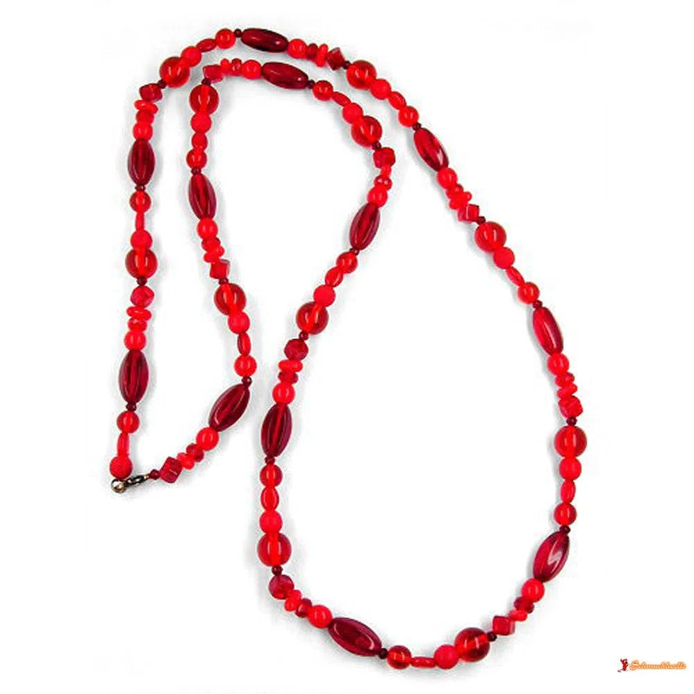 sehr dekoratives sommerliches Collier aus hochwertigen Glasperlen in verschiedenen rot-Tönen, Verschluss silber-farbig