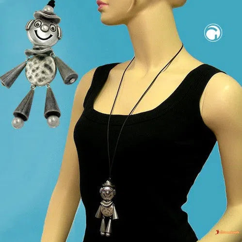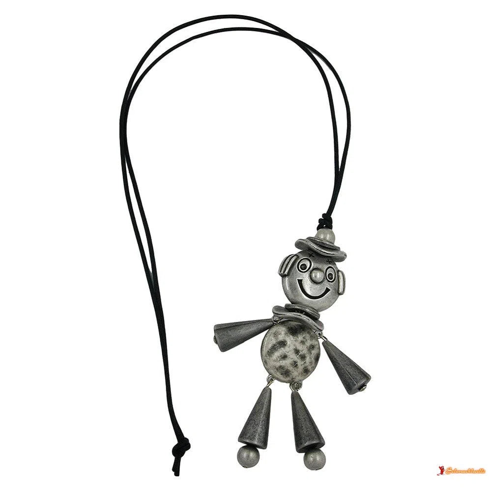 putziger Hampelmann aus Kunststoff mit galvanischer Oberfläche und beweglichen Teilen, an Kordel schwarz, in Deutschland gefertigte Handarbeit