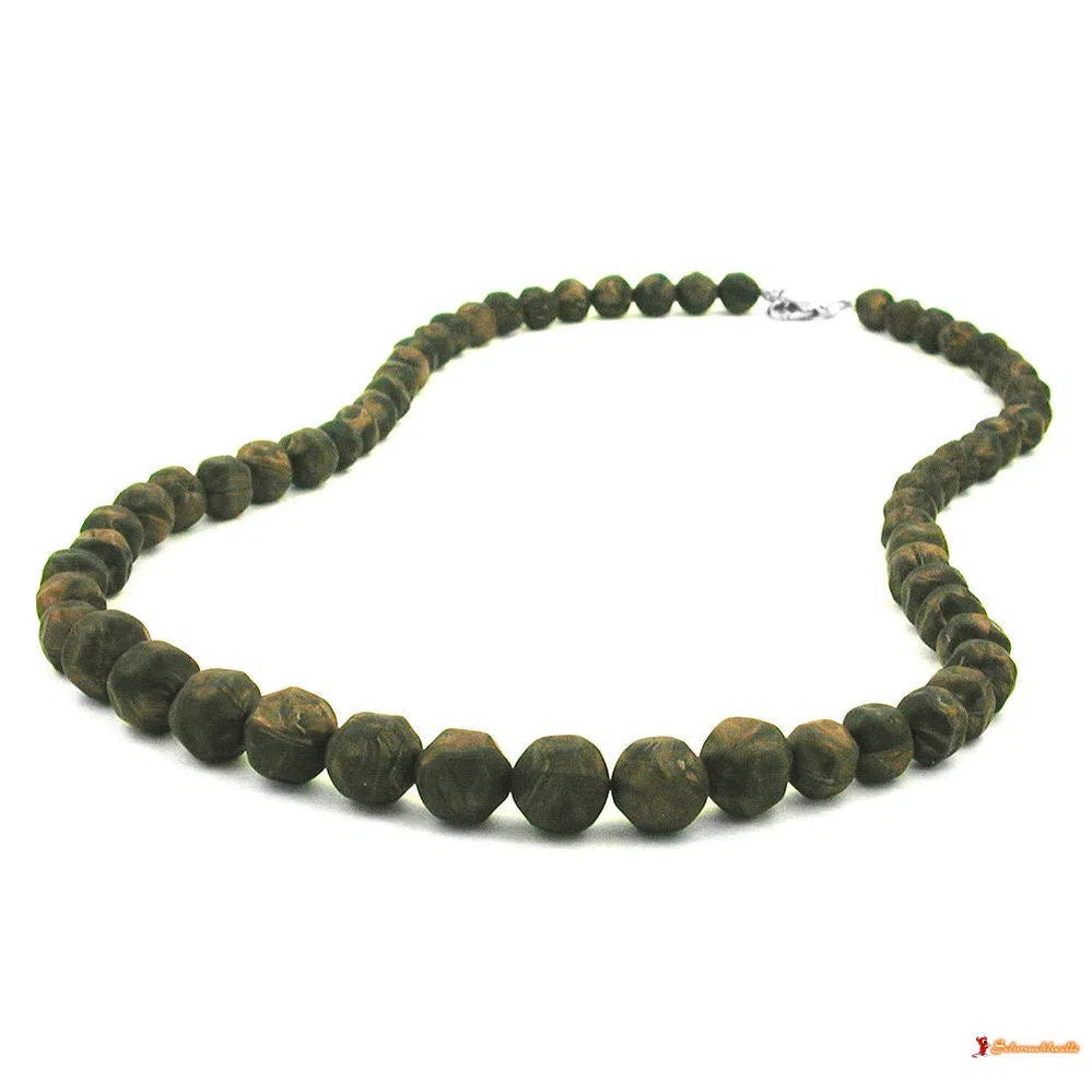 Kette Kunststoffperlen Barockperlen olivgrün-schwarz-marmoriert verlaufend 60cm