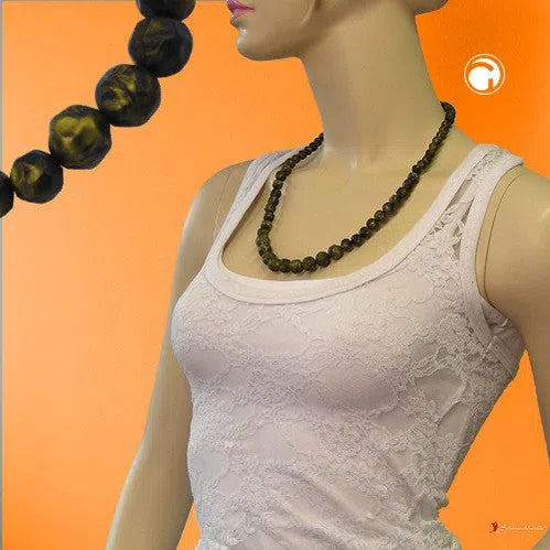 Entdecken Sie die exquisite Kette Kunststoffperlen Barockperlen olivgrün-schwarz-marmoriert verlaufend 60cm, die perfekt für die Herbst- und Wintermode geeignet ist. Diese stilvolle Perlenkette zeichnet sich durch ihre Kombination aus 8mm, 10mm und 12mm großen, oliv-grün und schwarz marmorierten Kunststoffperlen aus. Dank der einzigartigen Farbverlauf-Optik und dem metallischen Glanz werden Sie mit diesem Schmuckstück garantiert zum Blickfang.