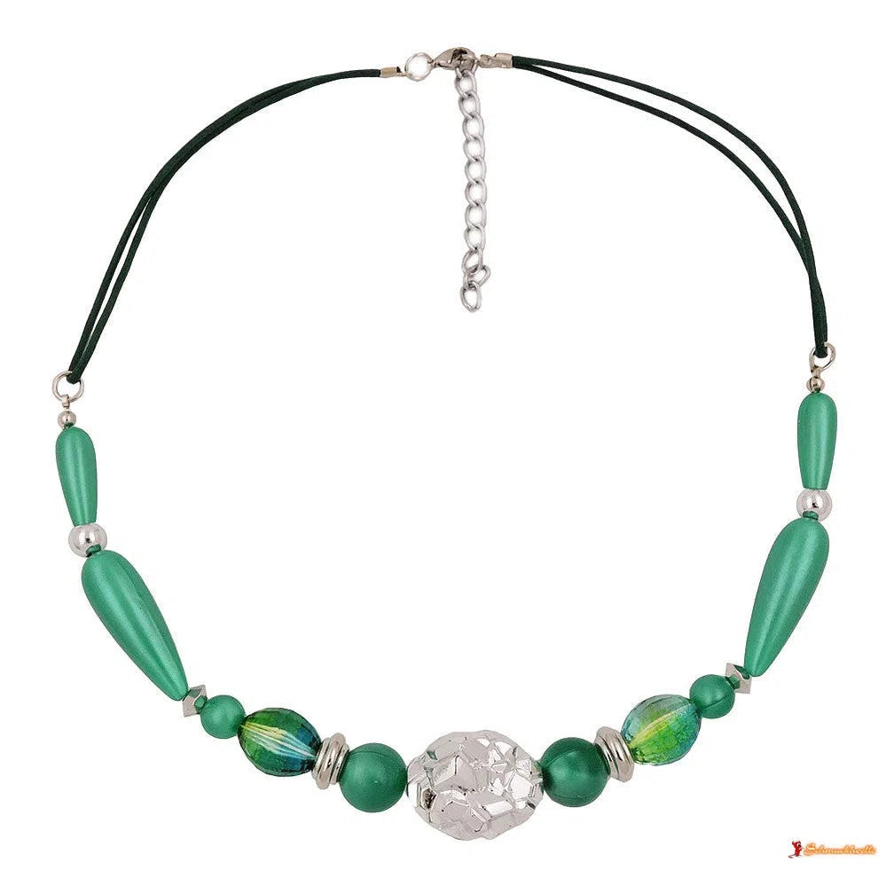 Kette Kunststoffperlen Strukturperle chrom seidig-grün Kordel 45cm