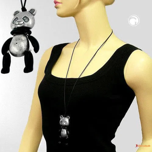 Kette Panda altsilberfarben schwarz-matt