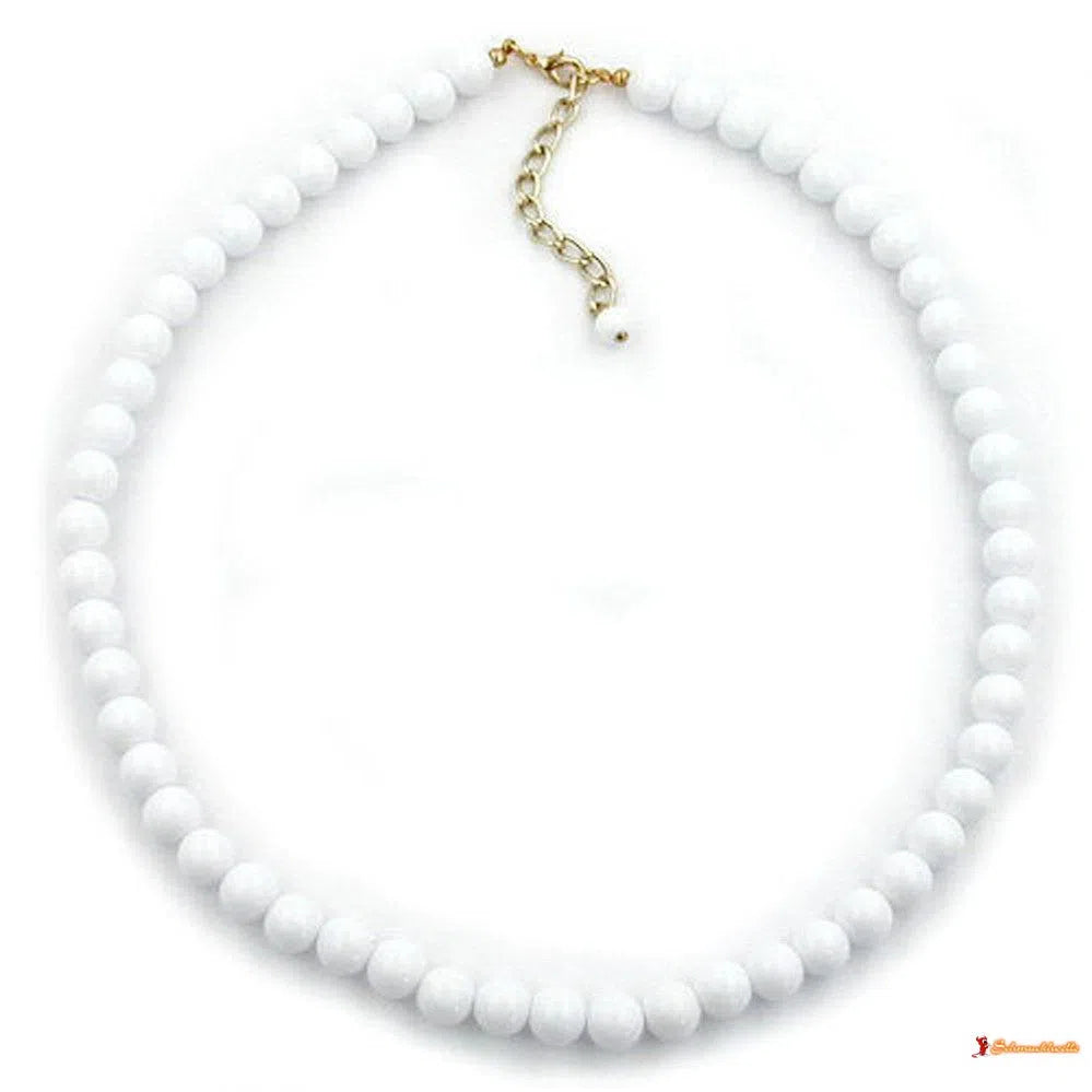 sommerliches Collier mit 6mm Kunststoffperle weiß-glänzend, Verschluss vergoldet mit Verlängerungskettchen und Perle als Abschluss, in Deutschland gefertigte Handarbeit