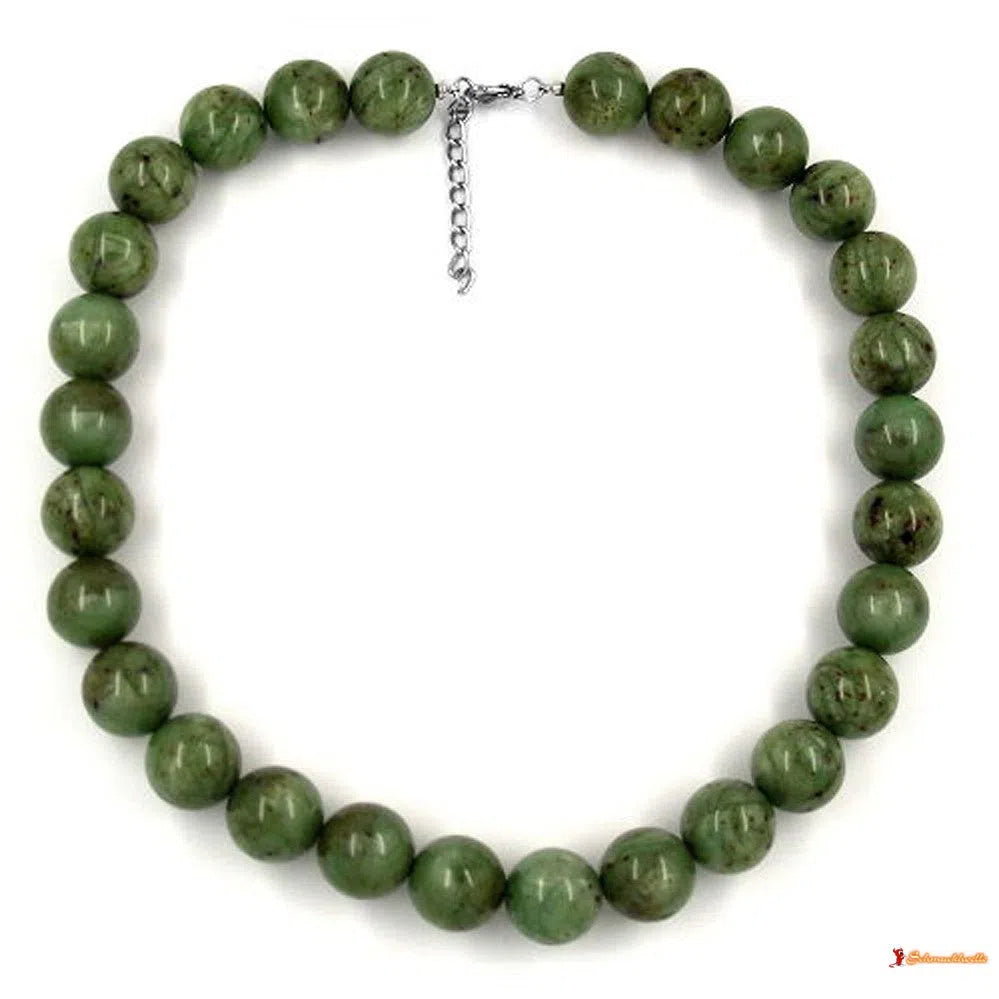 sommerliches Collier mit 18mm Kunststoffperlen hellgrün-braun-marmoriert glänzend, Verschluss silber-farbig mit Verlängerungskettchen, in Deutschland gefertigte Handarbeit