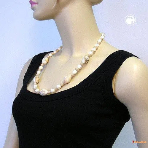 Kette Perlen beige-marmor-matt