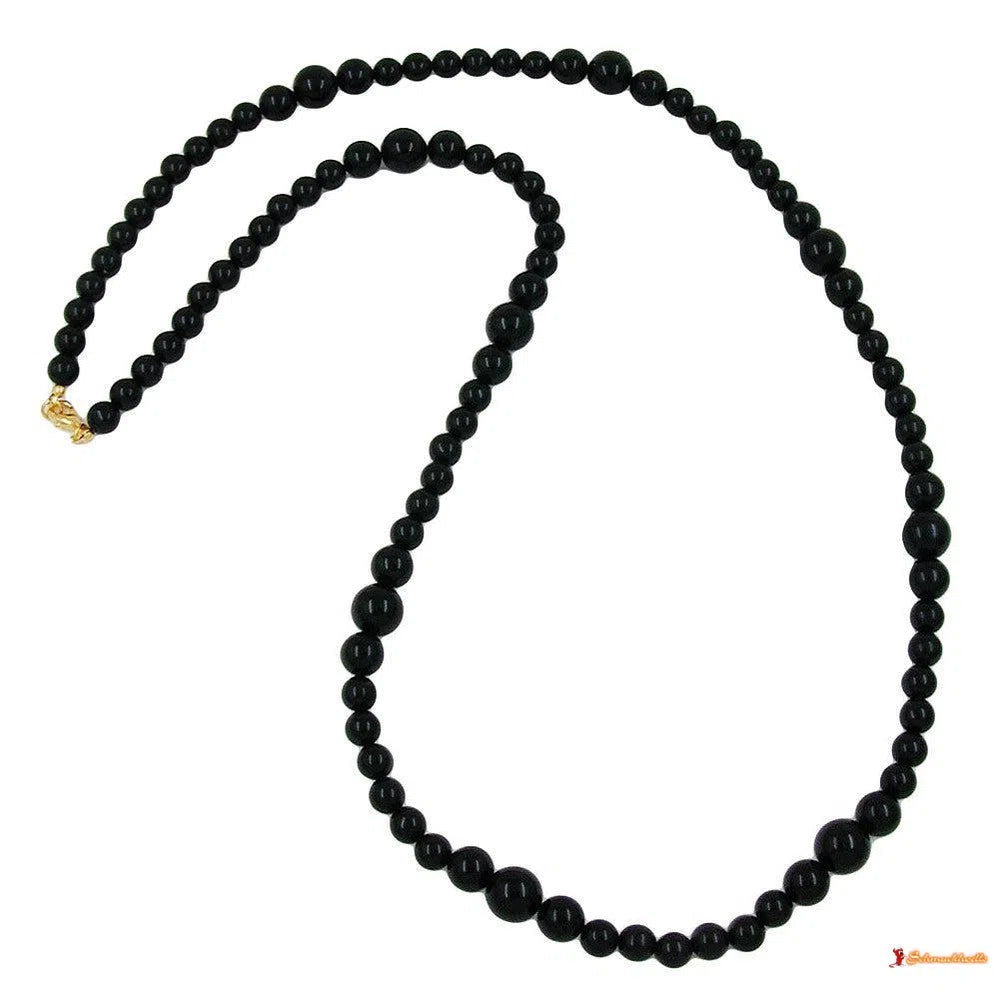 dekoratives Collier mit Kunststoffperlen in 8mm, 10mm und 12mm schwarz-glänzend, Verschluss silber-farbig, in Deutschland gefertigte Handarbeit