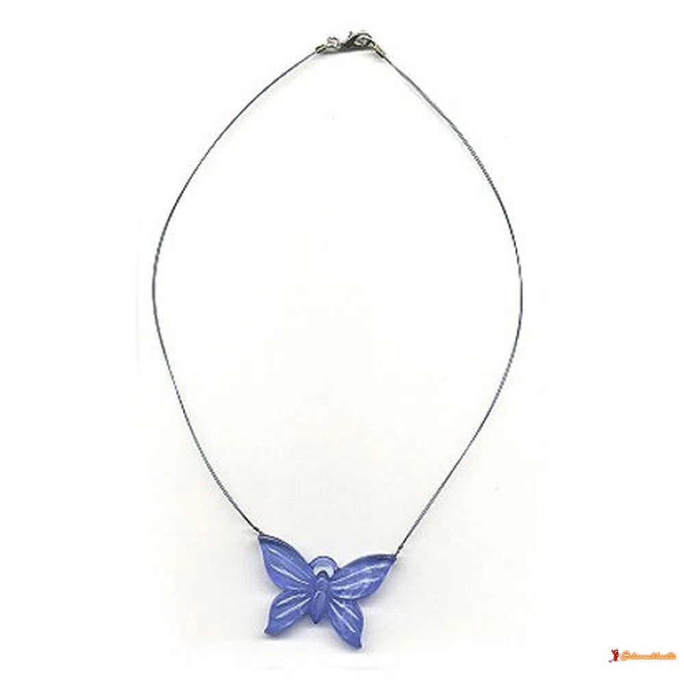 doppelter Stahldraht blau-grau, Nylon ummantelt, Schmetterling hellblau transparent marmoriert, in Deutschland gefertigte Handarbeit