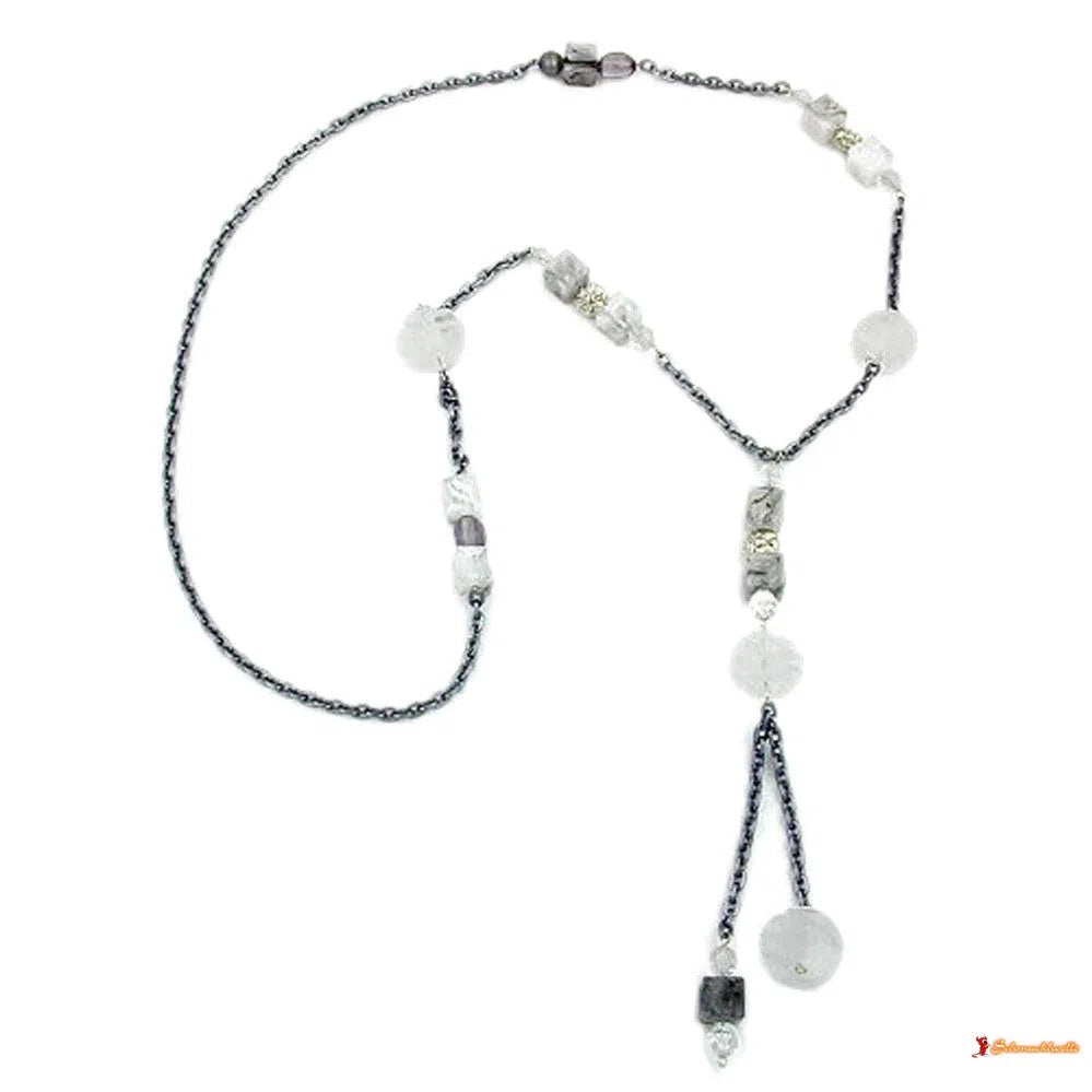 elegantes Collier mit verschiedenen Kunststoffperlen in grau-marmoriert und weiß-tönen, teilweise verbunden mit Ankerkette aus Aluminium in silber-farbig, in Deutschland gefertigte Handarbeit