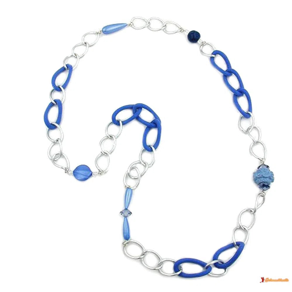 Kette Weitpanzer hell-silberfarben und blau
