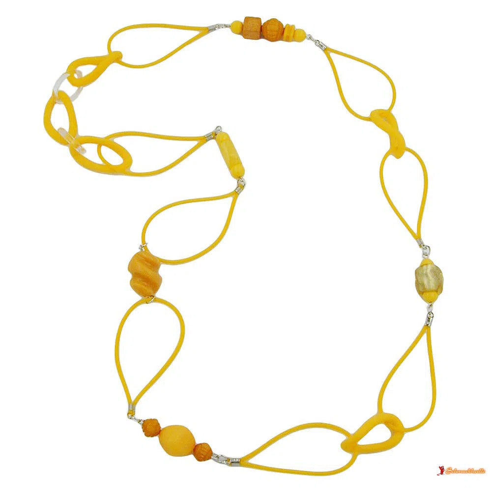 sehr dekoratives Sommercollier in erfrischendem Gelb, 2er Gummi in gelb kombiniert mit Weitpanzer-Teilen ausKunststoff in gelb, farblich abgestimmte Kunststoffperlen in gelb und ocker, in Deutschland gefertigte Handarbeit