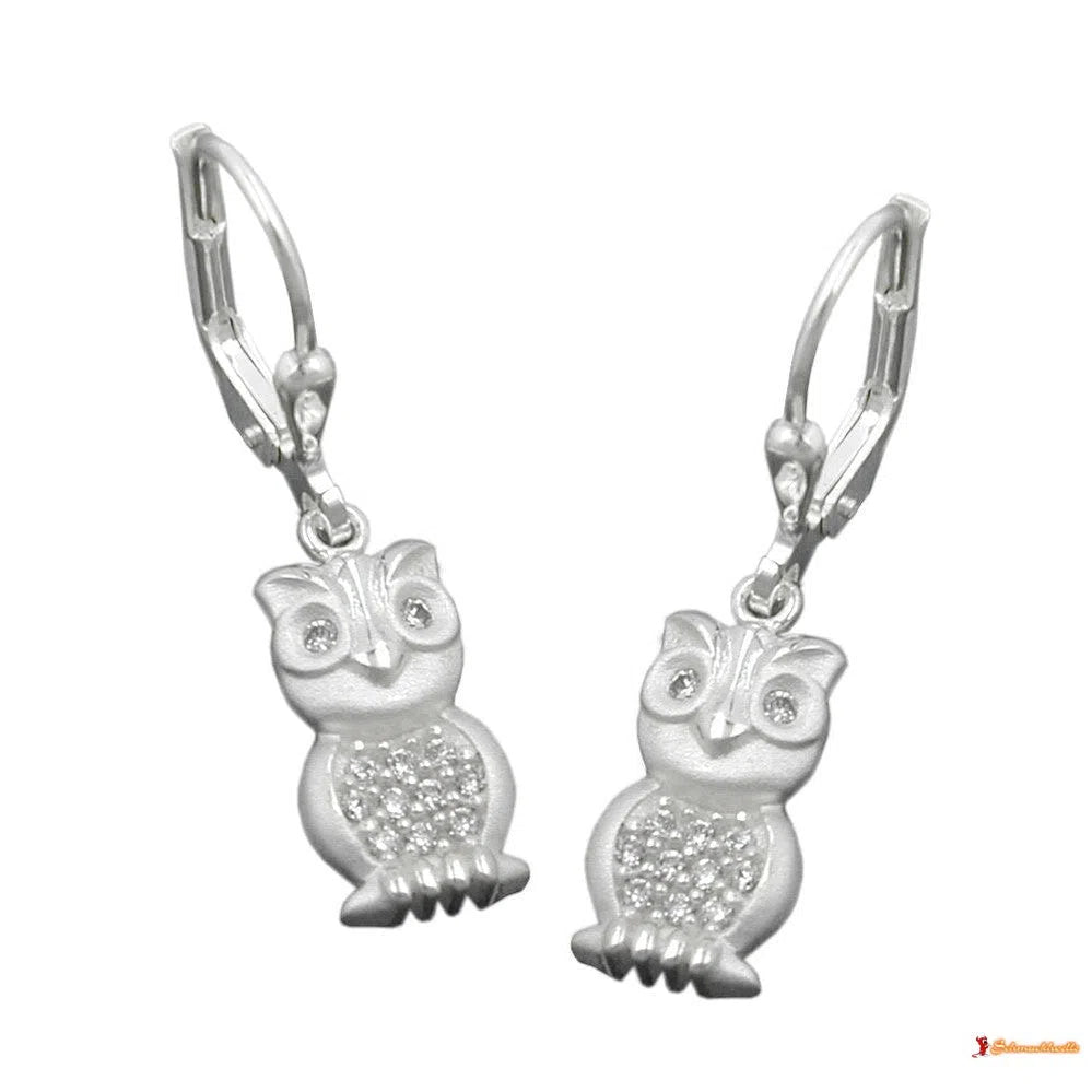 Ohrbrisur Ohrhänger Ohrringe Eule matt-glänzend mit Zirkonias Silber 925